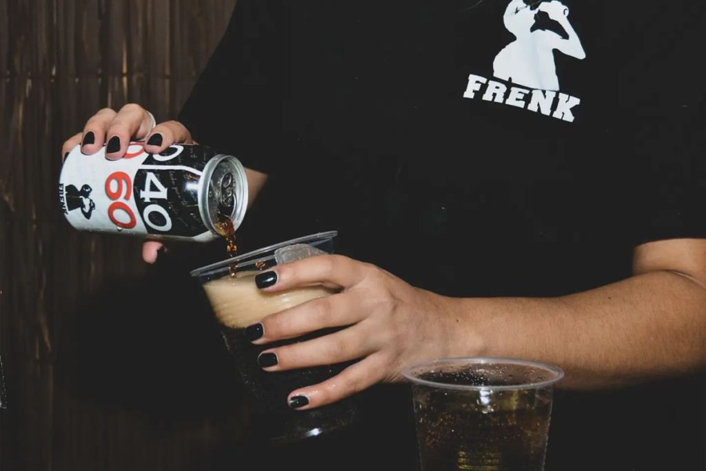 - Al ser en formato lata no hay riesgo de que se rompa y además cae menos líquido al bailar o caminar con ella.